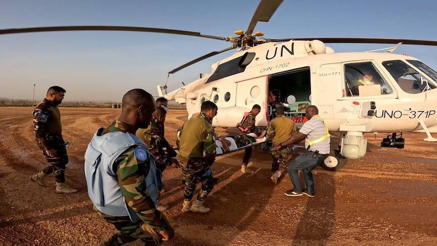 维和直升机分队执行紧急医疗后送任务。维和部队供图