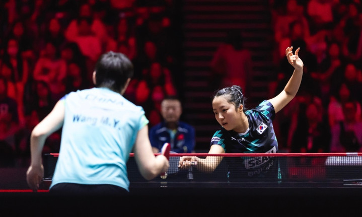 将视线转向女单赛场,王曼昱带来的则是一场肾上腺素飙升的视觉盛宴,她的对手韩国名将申裕斌,这一天堪称不折不扣的“铁人”,在女单比赛开打之前,申裕斌已经经历了两场恶战:先是在混双半决赛中搭档林钟勋险胜晋级,随后又在女双半决赛中与日本选手长崎美柚横扫对手闯入决赛,一天之内三场比赛,这对于任何运动员的体能都是极限挑战,然而令人敬佩的是,当站在王曼昱对面时,申裕斌的眼中没有丝毫疲态,反而迸发出了惊人的战斗力