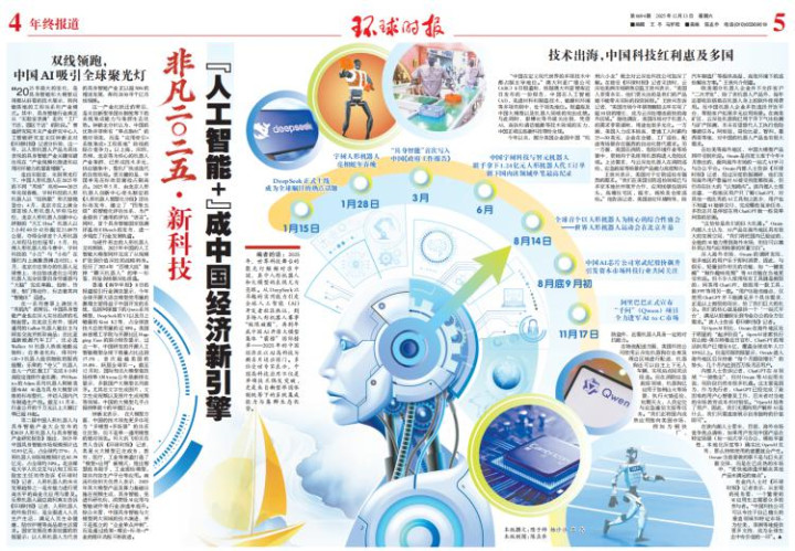 [环球时报报道记者陈子帅杨沙沙王冬]编者的话:2025年,世界科技舞台的聚光灯频频对准中国,其中人形机器人和大模型的表现尤为亮眼。从DeepSeek以卓越的实用能力引发全球人工智能(AI)开发者社区热议,到多场人形机器人赛事“极限破圈”,再到年底中国AI开源大模型集体“霸榜”国际榜单——2025年的中国经济正以AI高科技为新名片迈出国门。多位受访专家表示,中国高科技应用不仅是单项技术偶发突破,更是来自新型举国体制统筹下的系统集成能力与集群生态优势。